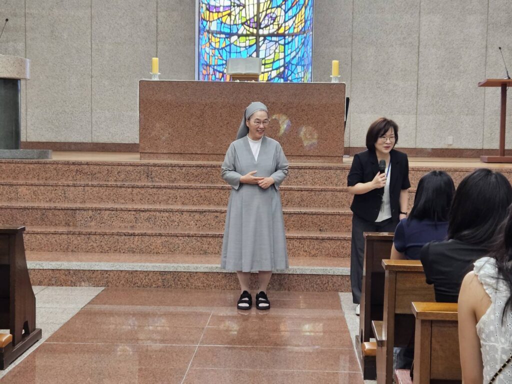 聖堂では、本校とセントポール女子高校の設立母体であるシャルトル聖パウロ修道女会のマスール方が出迎えてくださいました。