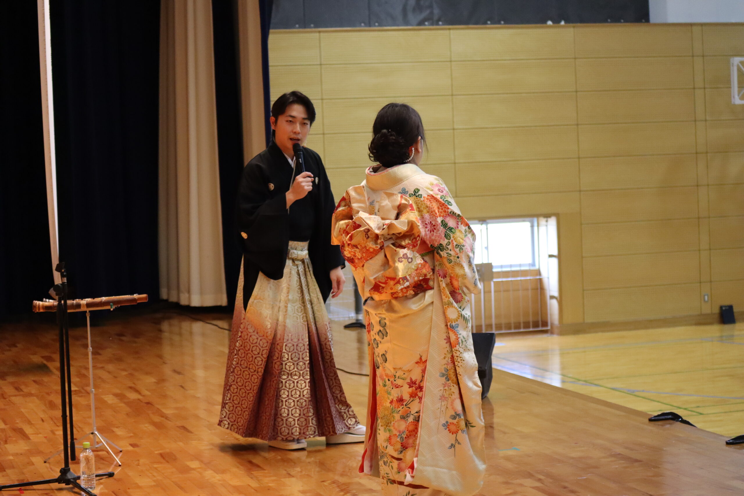 前田先生のソロ演奏が終わったタイミングで登場したのが、本校吟詠剣詩舞同好会顧問の大住先生!