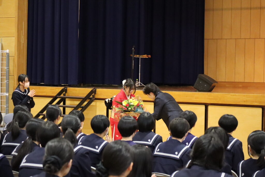 なかなか生で聴く機会のない尺八の音色に、うっとりと聴き入っていた生徒たちでした😊✨