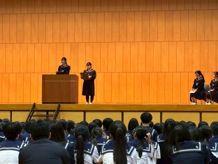 11月19日、吟詠家・尺八演奏家として国内外で活躍されている前田健志先生を講師にお招きし、進路講演会&芸術鑑賞会を実施しました。 本校は2023年より上智大学とのカトリック学校連携協定を結んでいます。 前田先生は上智大学外国語学部英文学科のご出身ということで、そのご縁での実施となりました。 はじめに芸術鑑賞会として、ミニコンサートを実施しました🎵 まずは前田先生の美しい尺八のソロ演奏からスタート! なかなか生で聴く機会のない尺八の音色に、うっとりと聴き入っていた生徒たちでした😊✨ 前田先生のソロ演奏が終わったタイミングで登場したのが、本校吟詠剣詩舞同好会顧問の大住先生! 前田先生と大住先生は、日本コロムビア吟詠音楽会の同期の吟詠家でもあります🎤✨ さあ、ここからは生徒も参加のスペシャルステージです! まずは吟詠剣詩舞同好会3年生の嶽本さんによる吟詠×剣道部2年生の石河さん・荒木さんによる日本剣道形×前田先生による尺八伴奏で、剣道吟「熊本城」を披露! 気迫たっぷりの演武・演奏に、生徒たちも目が離せない様子でした👀✨ 続いて、今回が初めてのお披露目となった弓道吟です。 この披露のために、詩家の馬場頼洲先生に漢詩「弓道精神」を書き下ろしていただきました! 大住先生の吟詠×弓道部2年生の中村さんによる演武×前田先生による尺八伴奏のコラボレーションです。 初めての試みということもあり、前田先生にも様々にアドバイスをいただいて実現した弓道吟。 矢が的に当たった瞬間、大きな拍手が沸き起こりました👏✨ 続いて、吟詠剣詩舞同好会2年生の岩城さんの日本舞踊×前田先生による歌謡吟詠「信長」です。 岩城さんの舞も今回のために、ご流派の家元先生に振りをつけていただきました。 信長の力強い生きざまを感じるような、素晴らしい舞と吟のコラボレーションでした😊💕 ミニコンサートの最後は、前田先生と大住先生による歌謡吟詠「白虎隊」の披露でした。 大きな拍手と共にミニコンサートが終わり、続いて進路講演会です! 進路講演会では、前田先生の高校時代・大学時代のお話、なぜ演奏家という道に進まれたのかについて伺いました。 人生の中で訪れる様々なチャンスを確実に掴み取り、将来につなげていらっしゃる先生のお話に、生徒たちが何度もうなずき、熱心にメモを取る姿が大変印象的でした。 生徒の皆さん、まずは自分の好きなものを明確にして、自分の信じる道を進んでいきましょう✨ 講演会の最後は、前田先生のオリジナル曲で元気いっぱいに幕を閉じました! 校長先生・教頭先生はじめ、たくさんの職員とのコラボレーションに、生徒たちもこの笑顔です😊💕 ...