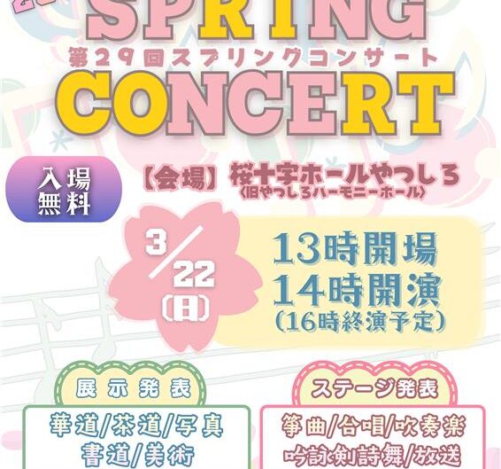3日間の吹奏楽部の定期演奏会へのご来場、ありがとうございました💕 「白百合ロス」に陥っていらっしゃる皆さまへ、次のステージのご案内です✨ 3月22日(日曜日)、第29回スプリングコンサートを開催いたします! 会場は桜十字ホールやつしろです💕皆様のご来場を、心よりお待ちしております☺❤ ☆今回はポスターのデザインを3種類作成いたしました! いずれも本校職員よりデザインの基礎を学んだ生徒たちが作成したものです👀✨ 皆さんはどのデザインがお好きですか?😍✨ ...